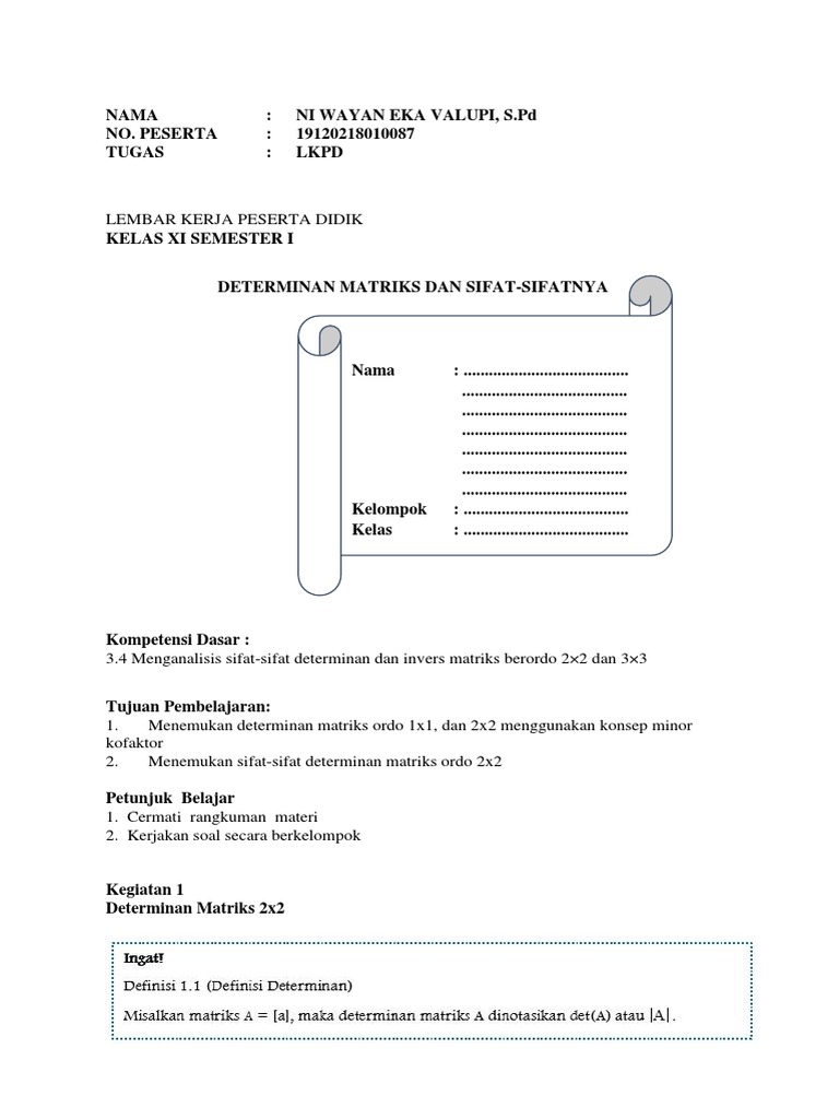 Tampilkan contoh matriks 2x4, kmd transposekan berikan definisi umum dari transpose. Unlike general multiplication, matrix multiplication is not commutative. Multiplying a x b and b x a will give different results. Untuk lebih jelasnya , berikut ini diuraikan cara mencari determinan matriks berordo 2x2 dan 3x3 a. It's contain 2x2 and 3x3 matrix following by their invers, transpose and determinant.